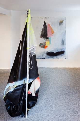 Katrin Hahners aktuelle Malerei spürt einem Ort nach, ist eine Untersuchung des Begriffes Heimat. Eine vorangehende Zeichnung , zumeist Nachempfindungen von Natur- oder Landschaftsmotiven werden auf verschiedenste Weise verfremdet. Selbstbewusst und souverän reiht sie große Farbflächen aneinander, stellt sie in Kontrast zu kleinteiligen Ausführungen. Sie deckt auf, um wieder zu verdecken, ist kraftvoll und zart zugleich. In den konkreteren Arbeiten werden fliegende Häuser ohne erkennbares Fundament ein zentrales Motiv,das in mannigfaltigen Variationen immer wieder auftaucht. Die fehlende Verankerung der Motive in Ort und Zeit eröffnet dem Betrachter eine neue Bedeutungsebene, die etwas Traumhaftes, Rätselhaftes und Fragiles suggeriert.