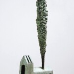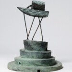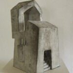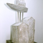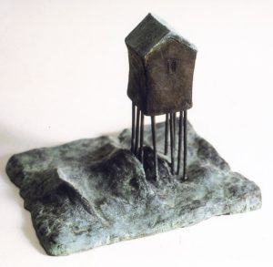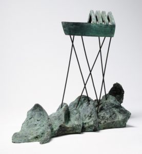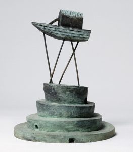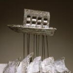 Im „Garten“ und „Im Verborgenen“ strömt alles auf einen Punkt hin. Eine andere Gruppe der Skulpturen „Die Insel“, „Stadt auf Reisen“ und „In See stechen“ bringt dagegen gegenläufige Tendenzen zusammen. Architektur, Bewegung und Landschaft werden auf eine ungewohnte Weise zusammengedacht. Die „Stadt auf Reisen“ hat tatsächlich Vorbilder in der realen Welt, in den Bohrinseln, großen Förderstätten, die im Meer ausgesetzt sind. Die Skulptur dagegen betont mit den Häusern im Boot das Widersprüchliche: zwischen der Sehnsucht nach Geborgenheit und der Abenteuerlust ist es nicht einfach, Entscheidungen zu treffen. Das Boot ist auf den beiden Säulen auch seiner eigentlichen Bestimmung, über das Meer zu fahren, enthoben. Ein absurdes Bild zwar, aber durchaus nachfühlbar, beschreibt es doch einen Punkt, an dem man immer wieder gerät. Festhalten oder Fahrenlassen, Wurzelnschlagen oder Ankerlichten: Ob es gelingen kann, beides miteinander zu verbinden, bleibt auch in den Skulpturen offen.